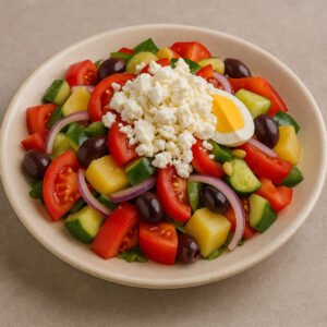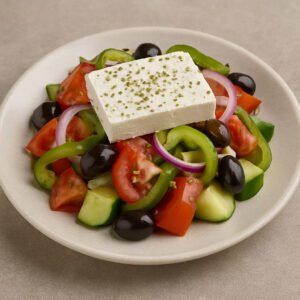 ντομάτα, αγγούρι, πιπεριά, κρεμμύδι, ελιές, φέτα